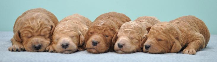 | Shelby, our Goldendoodle mom, had her Standard-sized F1B Goldendoodle babies on Monday, March 8, 2021. We have 5 males and 3 females! These puppies will be registered with the American Canine Hybrid Club. Jack, our Red Standard Poodle, is the father to these babies. Shelby's Standard-sized F1B Goldendoodles will be ready to go to their new homes on or after May 7, 2021! ALL OF SHELBY'S PUPPIES ARE ON HOLD! |