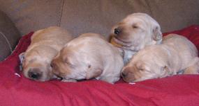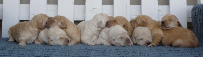 | Shelby, our Standard-sized F1 Goldendoodle mom, and Jack, our AKC Standard Poodle dad, are expecting Standard-sized F1B Goldendoodle puppies in early March. SHELBY'S PUPPIES HAVE ARRIVED! SEE THE AVAILABLE GOLDENDOODLES PAGE! |
