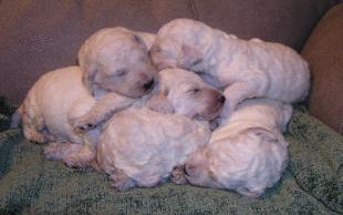| Hope, our Standard-sized F1B Labradoodle mom, and Hamlet, our AKC Standard Poodle dad, are expecting Standard-sized F2B Labradoodle puppies in mid-February. HOPE'S PUPPIES HAVE ARRIVED! SEE THE AVAILABLE LABRADOODLES PAGE! |